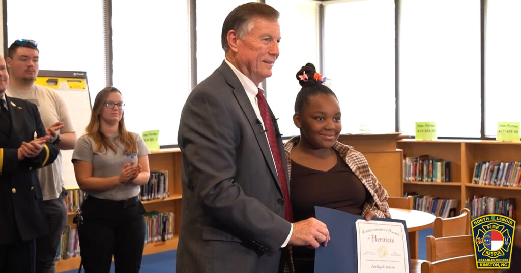 Mike Causey, North Carolina Insurance Commissioner and State Fire Marshal, presented Zsakiyah Sutton with… Read More »Local Middle School Student Receives Heroism Award from NC State Fire Marshal - North Lenoir Fire & Rescue Receives Donation from DripDrop to Provide Dehydration Relief to Firefighters